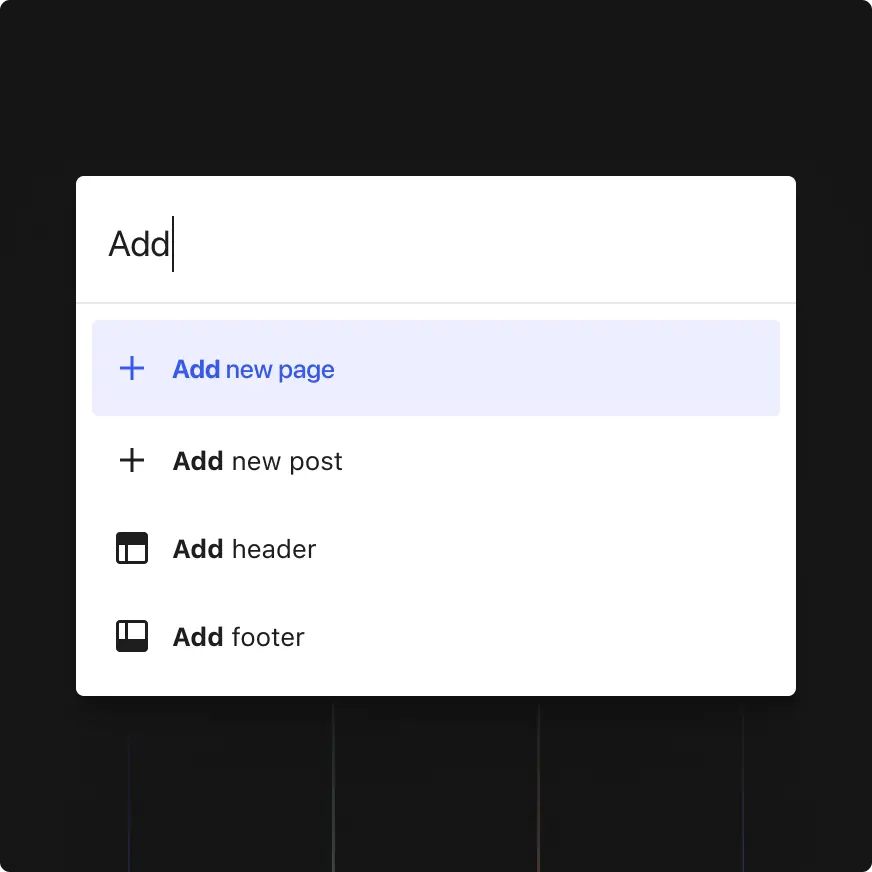 切换到特定模板或使用新工具打开编辑器首选项,帮助您快速导航扩展功能。使用简单的键盘快捷键(Mac 上的 ⌘+k 或 Windows 上的 Ctrl+k),单击站点视图中的侧边栏搜索图标,或单击标题栏,即可在几秒钟内到达您需要去的地方并完成您需要做的事情。