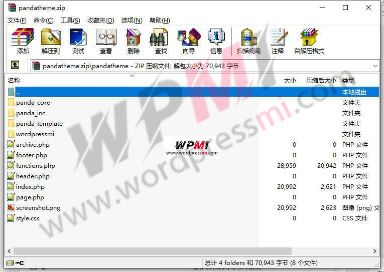 特别注意的是,如果WordPress主题压缩包里还有一个压缩包: